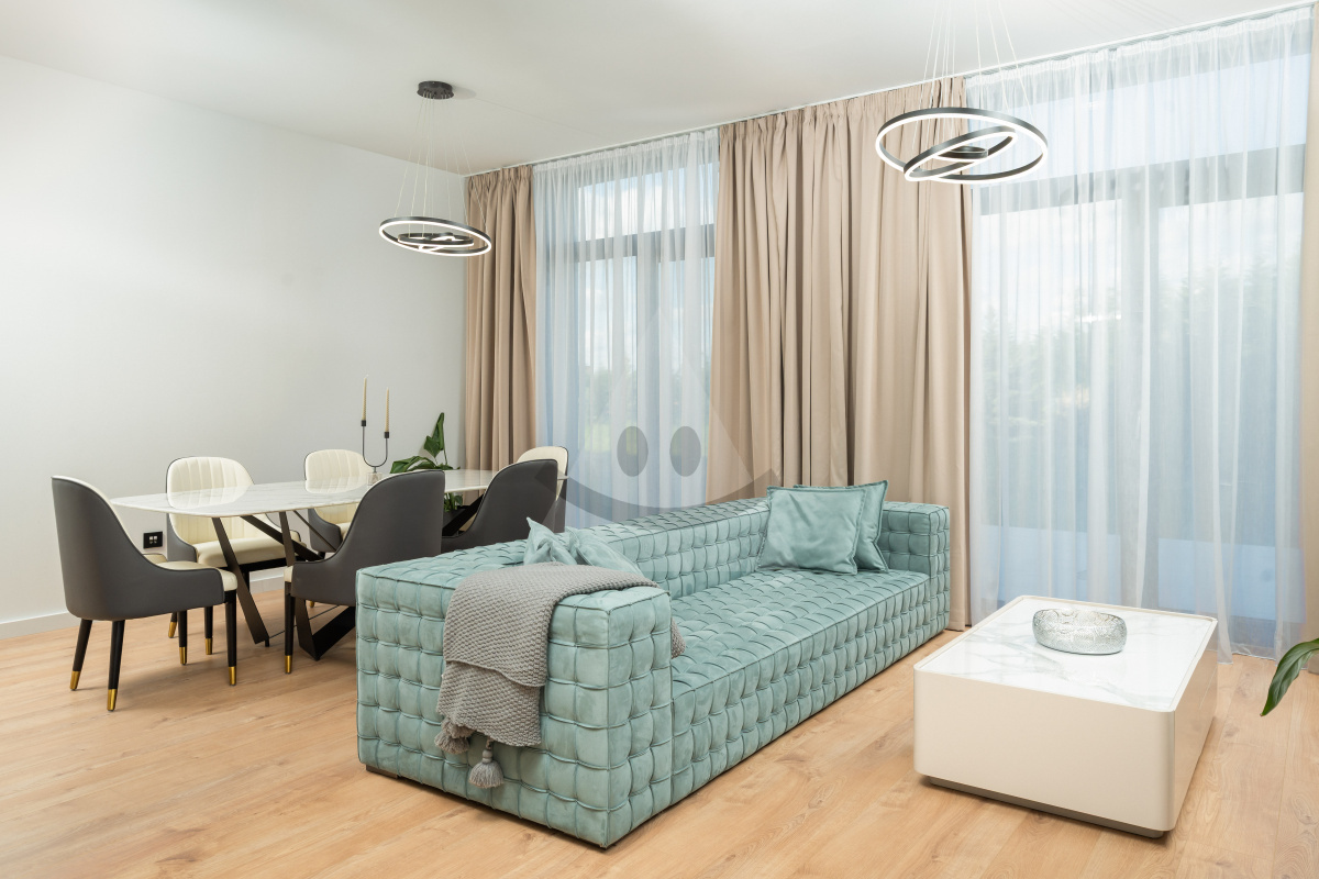 Byt ponúka kompletné štandardné vybavenie v cene, vrátane podlahového kúrenia s termostatmi v každej miestnosti, ktoré zabezpečuje vysoký komfort a úsporu energií. Súčasťou je klimatizácia (1x nainštalovaná) a príprava na klimatizáciu v každej izbe, čo zaručuje príjemné bývanie počas celého roka. K dispozícii je kompletne zariadená kúpeľňa so sanitou, kvalitné laminátové podlahy, interiérové dvere a praktický odkladací priestor na chodbe. K bytu prislúcha balkón s rozlohou 8,35m2.