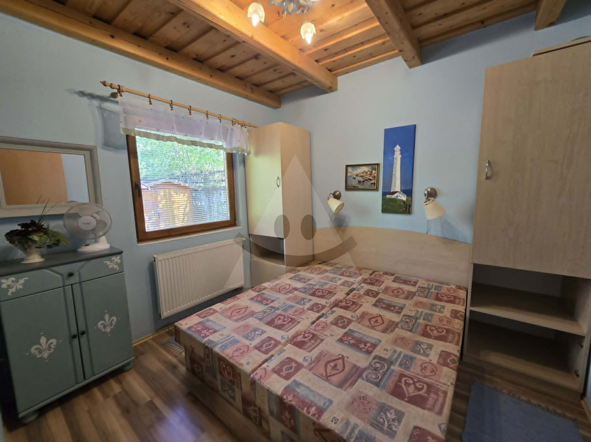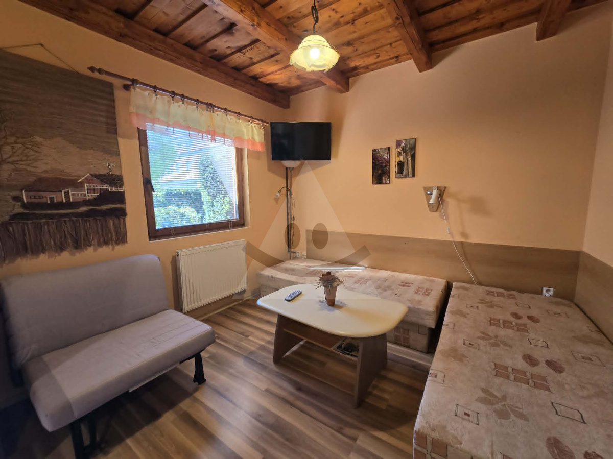 Chata bola postavená v roku 2005 a disponuje zastavanou plochou 68 m² na pozemku o rozlohe 387 m². Celková úžitková plocha dosahuje 56 m² rozdelených do dvoch samostatných apartmánov, pričom každý má úžitkovú plochu 28 m². Každý z dvoch apartmánov je riešený ako kompaktná a funkčná jednotka pre pohodlný pobyt až 4 osôb. Majú identickú dispozíciu, ktorá pozostáva z kuchynky spojenej s obývacou izbou – priestor na varenie, stolovanie a relax, samostatnej spálne – súkromie a pohodlný spánok po náročnom dni plnom zážitkov, kúpeľne s toaletou – kompletné sociálne zázemie. Oba apartmány sú vkusne zariadené a pripravené na okamžité využitie – môžete sa nasťahovať alebo začať prenajímať hneď po podpise kúpnej zmluvy. Samozrejme, ak máte vlastnú víziu, interiér je možné rekonštruovať a prispôsobiť podľa vašich predstáv a vkusu. Pozemok o rozlohe 387 m² je premyslene využitý tak, aby každý moment strávený vonku bol čo najpríjemnejší - spoločná terasa, altánky a miesto na grilovanie, či priestor pre pohodlné parkovanie až 3 osobných áut – žiadny problém, ak prídu návštevy alebo využívate oba apartmány súčasne s rôznymi skupinami hostí.